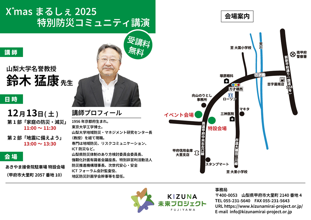山梨県内において、社会福祉、教育文化、その他公益の増進を図るとともに、災害時における被災者の支援事業をすることにより、地域の発展と繁栄に寄与いたします。