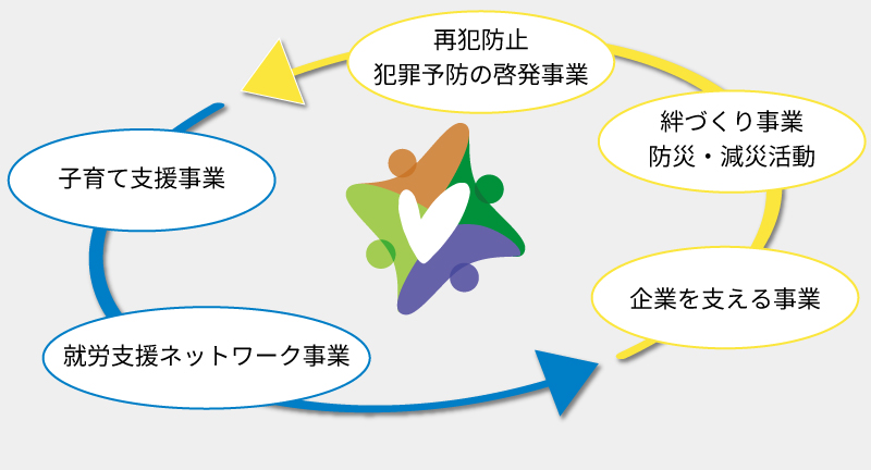 刑務所・少年院からの出所・出院者の社会での不自由さを解消するためのコミュニティづくりを、レクリエーションなどを通じて行う事業。 また、社会参加を促すため、地域の清掃活動やイベント運営補助などのボランティア活動への参加を支援する事業。